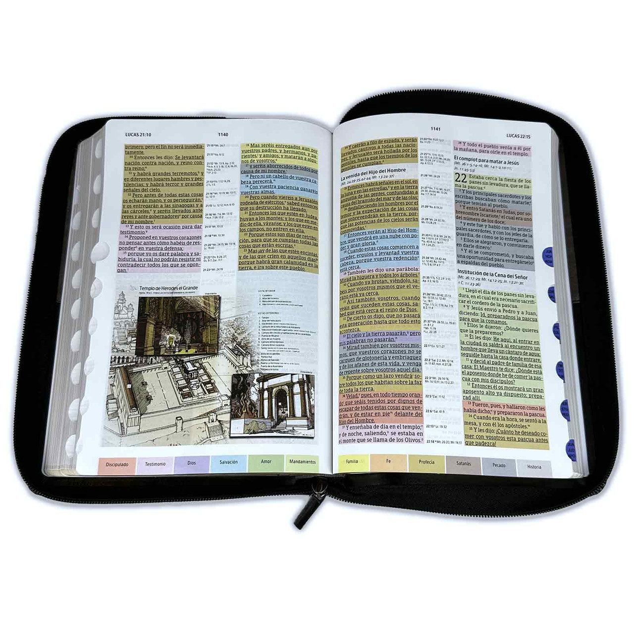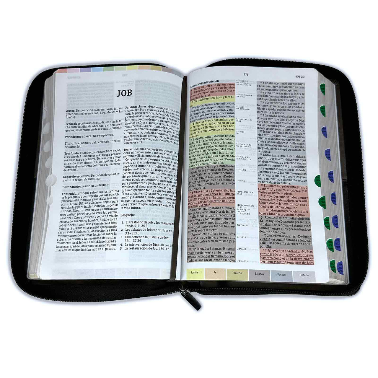 La Biblia de Estudio Arco Iris cuenta con un sistema único de «colores codificados» que le permite al lector de manera fácil y rápida identificar 12 temas importantes en las Escrituras: Dios, amor, discipulado, fe, pecado, Satanás, salvación, familia, testimonio, mandamientos, historia y profecía.