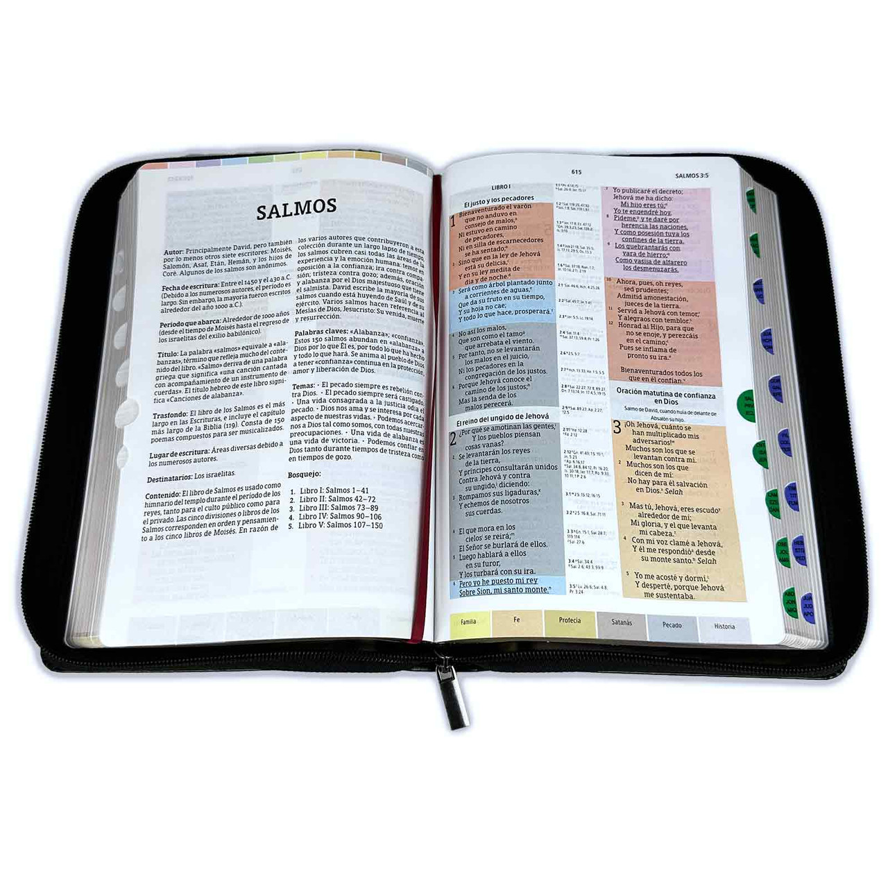 – Cada versículo en su propio color de acuerdo con 12 temas clave