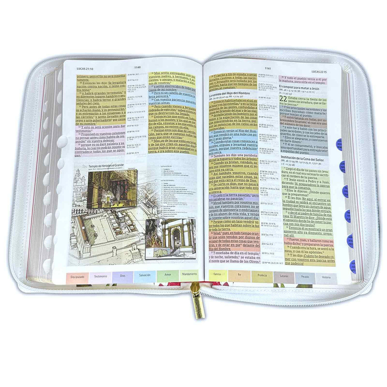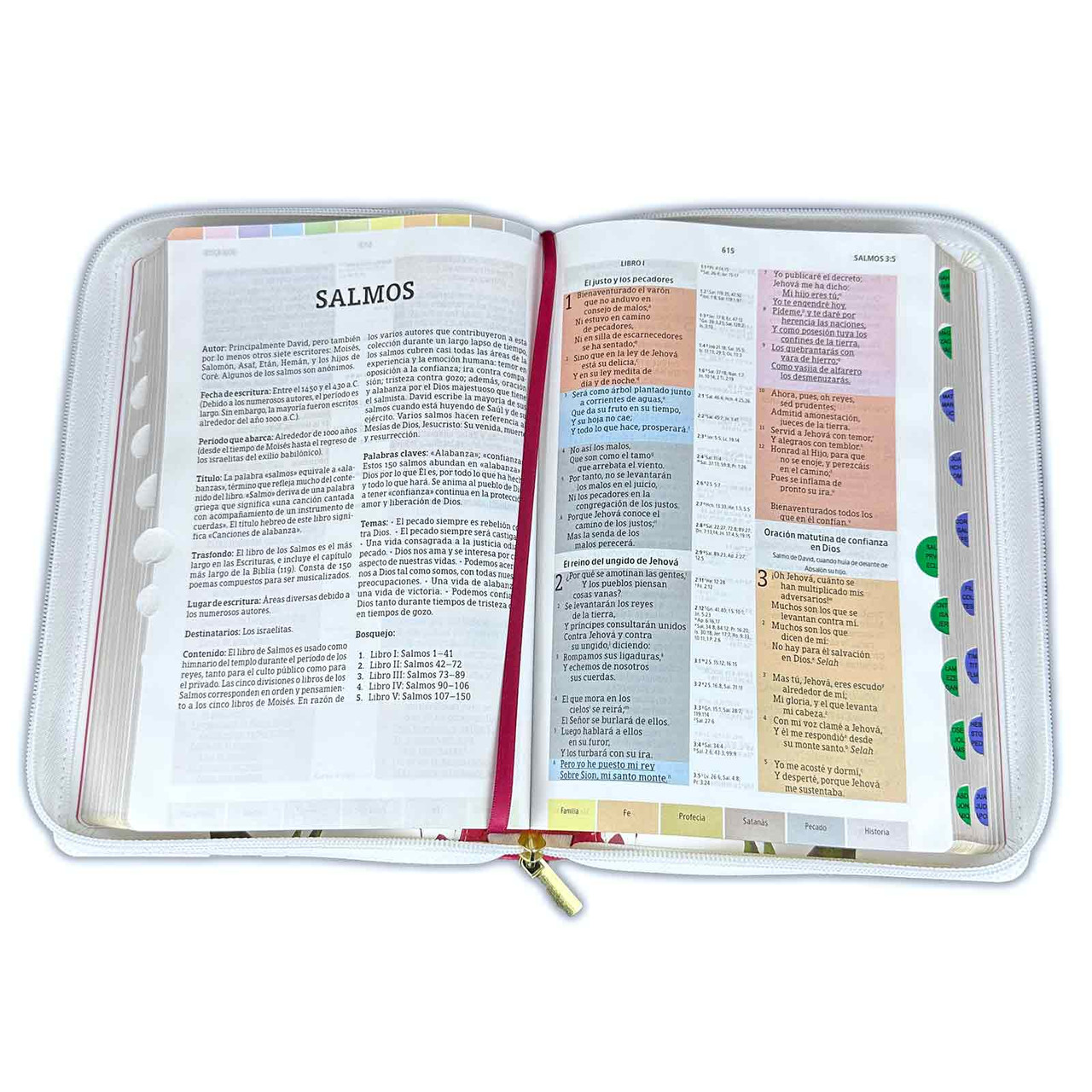 – Cada versículo en su propio color de acuerdo con 12 temas clave